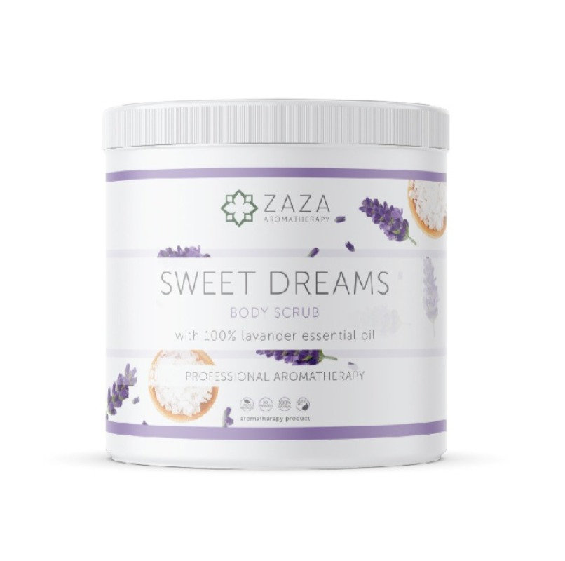Slani piling Sweet dreams sa prirodnim etaričnim uljem lavande i cvetovima suve lavande će vas svojim mirisom opustiti, suzbiti nervozu i uznemirenost. Pogodno za upotrebu u kombinaciji sa masažnim uljem Relax.